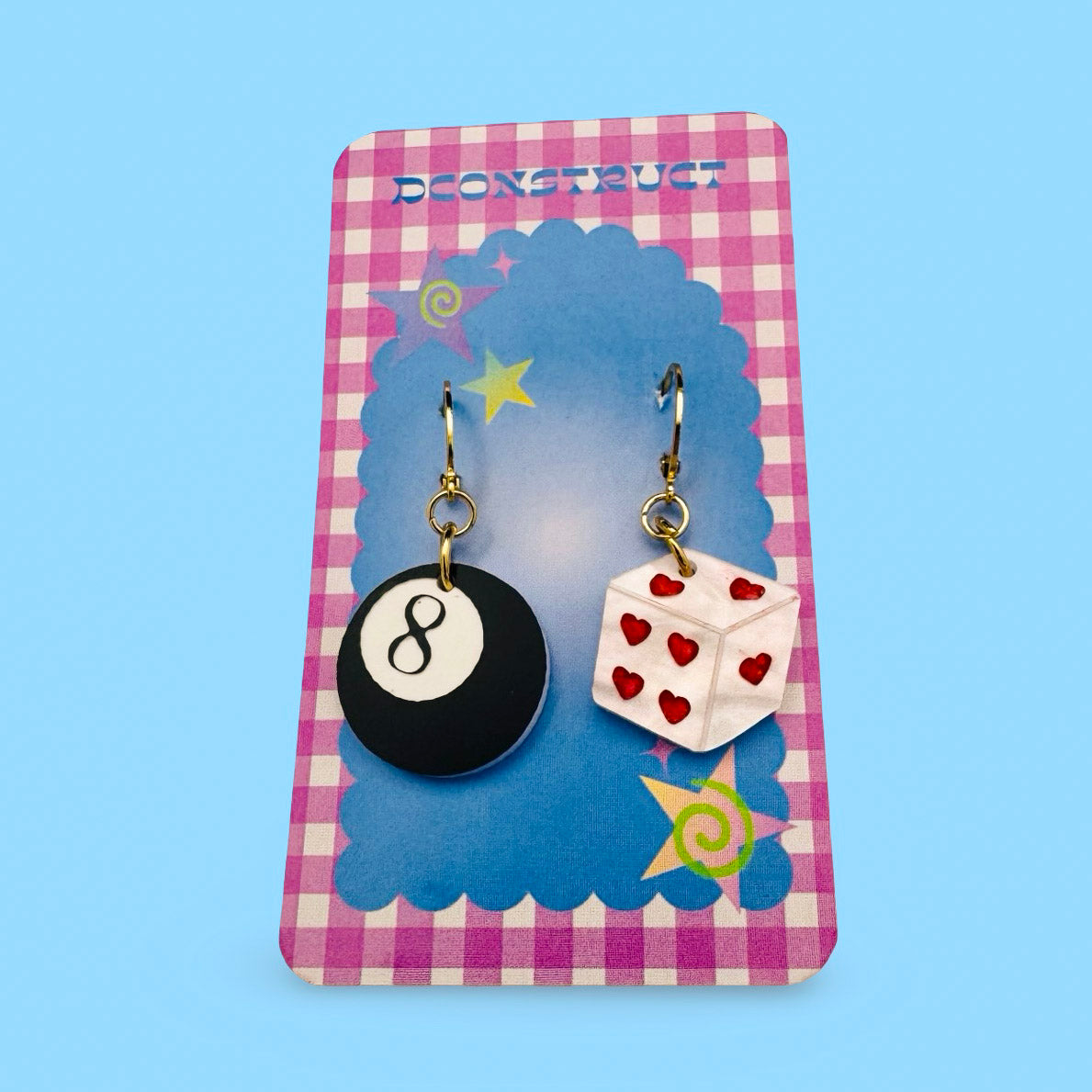 Roll the dice with our Eightball and Dice Charm Earring Set—the ultimate accessory for risk-takers and fortune seekers! These playful charms celebrate the thrill of chance and the magic of fate, combining the mystique of a magic eightball with the classic allure of lucky dice. Lightweight and full of mischievous charm, they dangle with personality that's impossible to ignore. Perfect for gamblers, game night enthusiasts, or anyone who loves accessories with a rebellious streak, these earrings deliver style with a side of cosmic intrigue. Let the universe know you're ready to embrace whatever comes your way—with style and a wink!