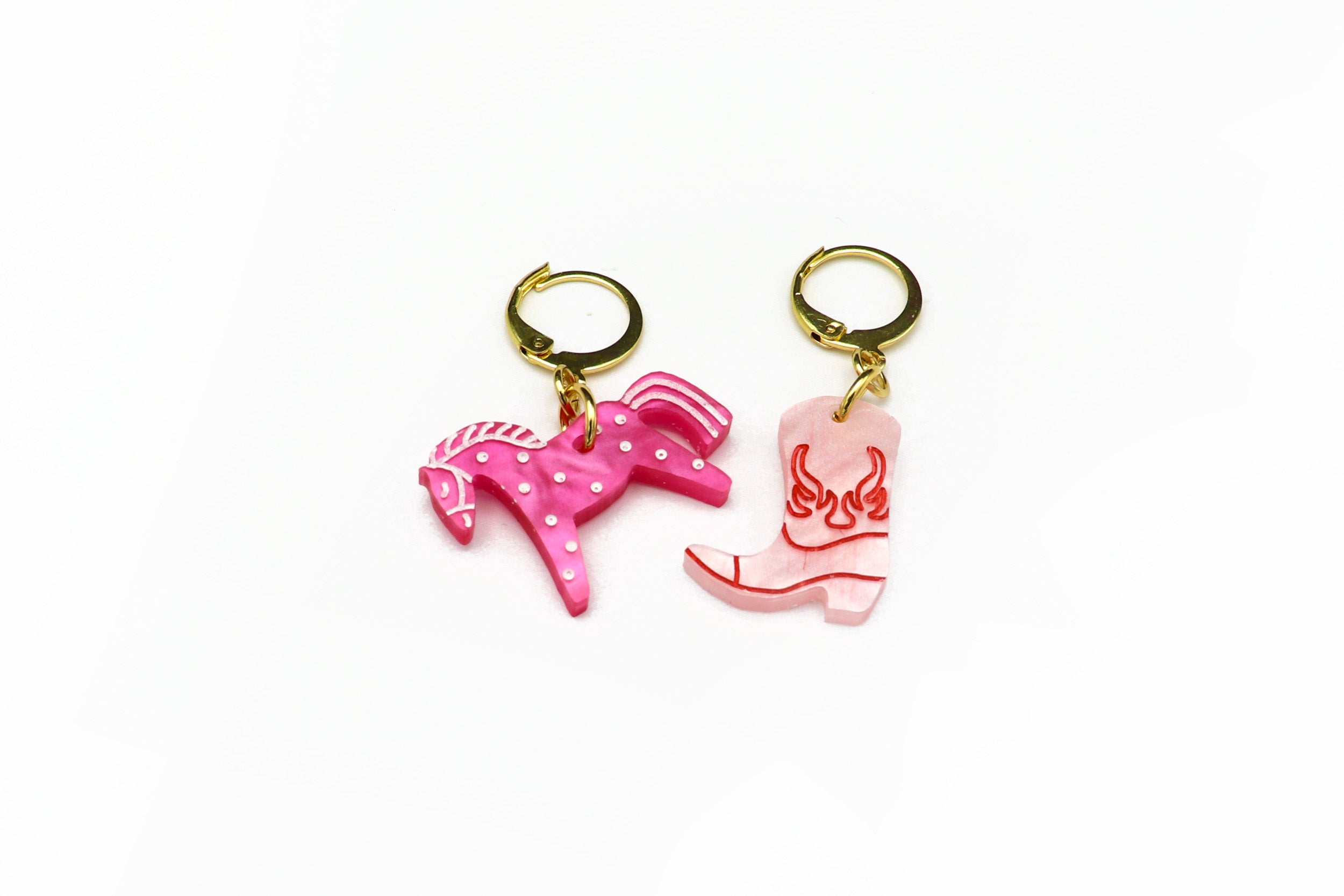 Saddle up with our Horse and Boot Charm Earring Set—a rootin' tootin' tribute to Western spirit and frontier flair. These charming earrings celebrate the iconic pairing of cowboy boots and trusty steeds, perfect for rodeo fans, horse lovers, and anyone who embraces their inner cowpoke. Lightweight and full of character, they dangle with playful Western charm that's sure to turn heads. Whether you're channeling ranch vibes, dreaming of wide-open spaces, or just love accessories with attitude, these earrings deliver style with a lasso-full of personality. Giddy up and show the world you've got that cowboy spirit!
